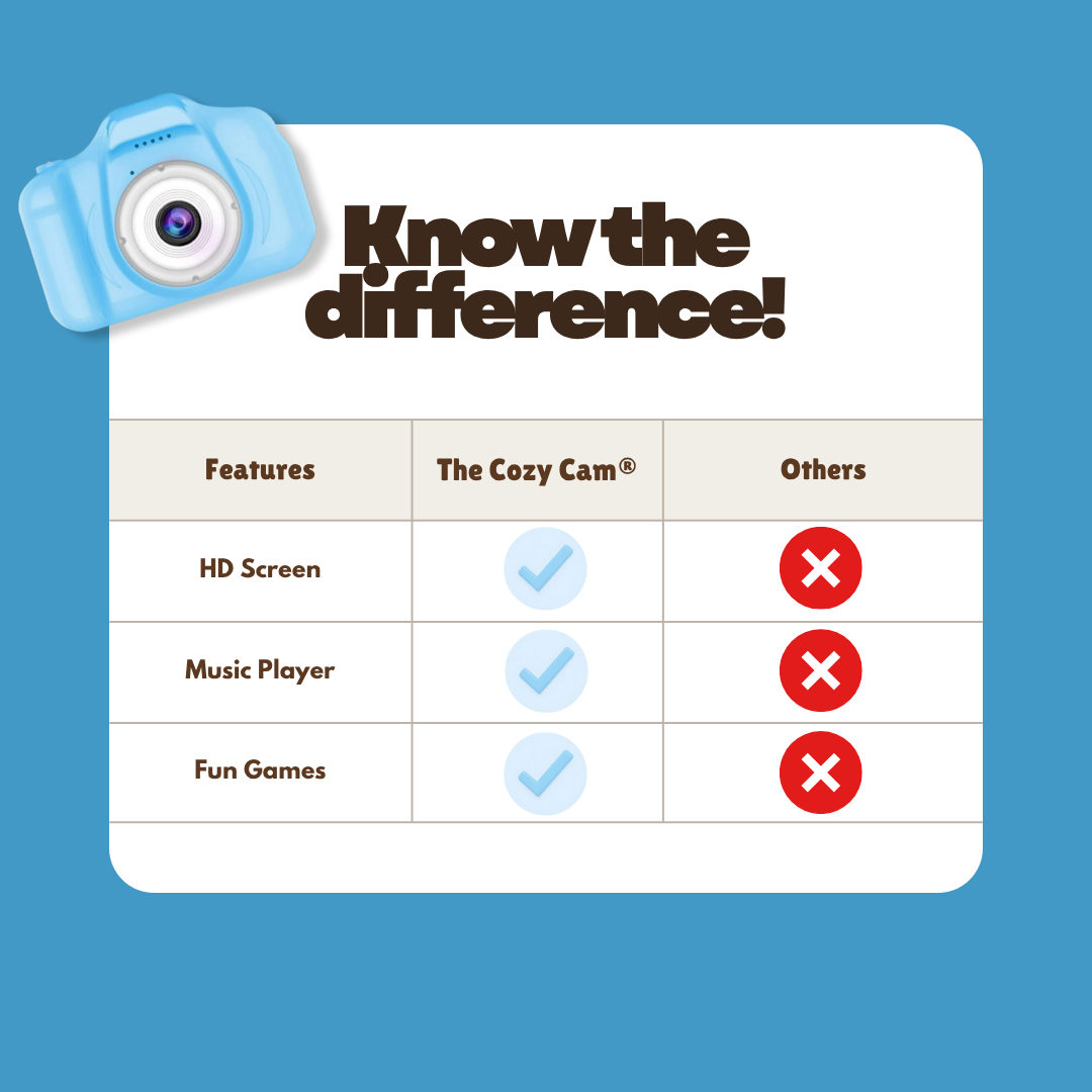 Meet The Cozy Camera, the ultimate gadget for young creators. It features a 12MP rear camera, selfie mode, video player, and a built-in music player for endless entertainment. Kids can snap, record, and play — even enjoy cute games and photo frames that make every picture a masterpiece.