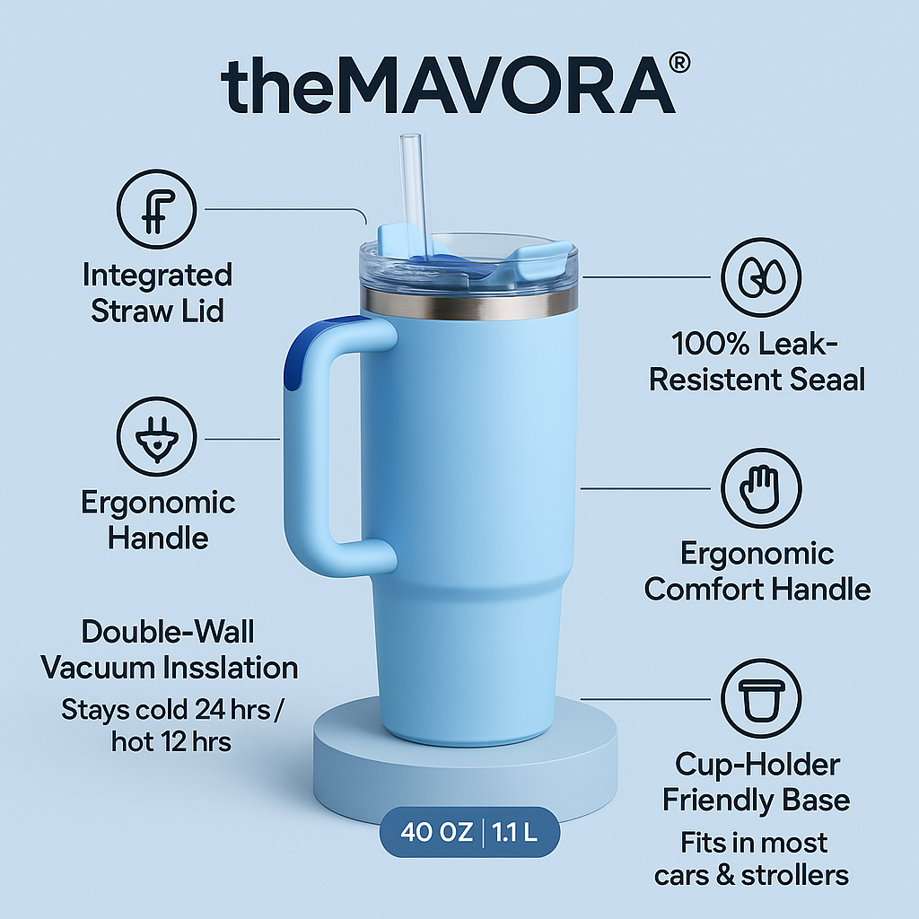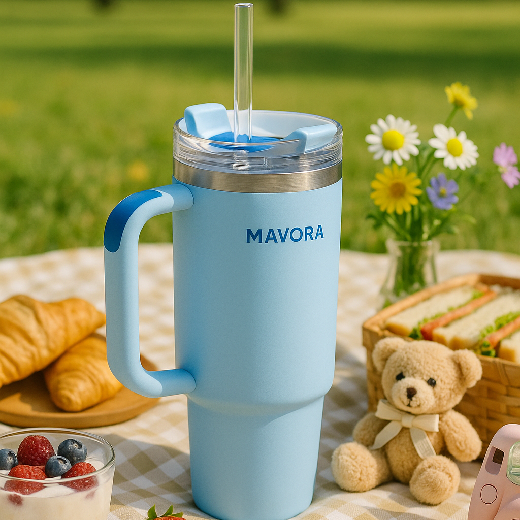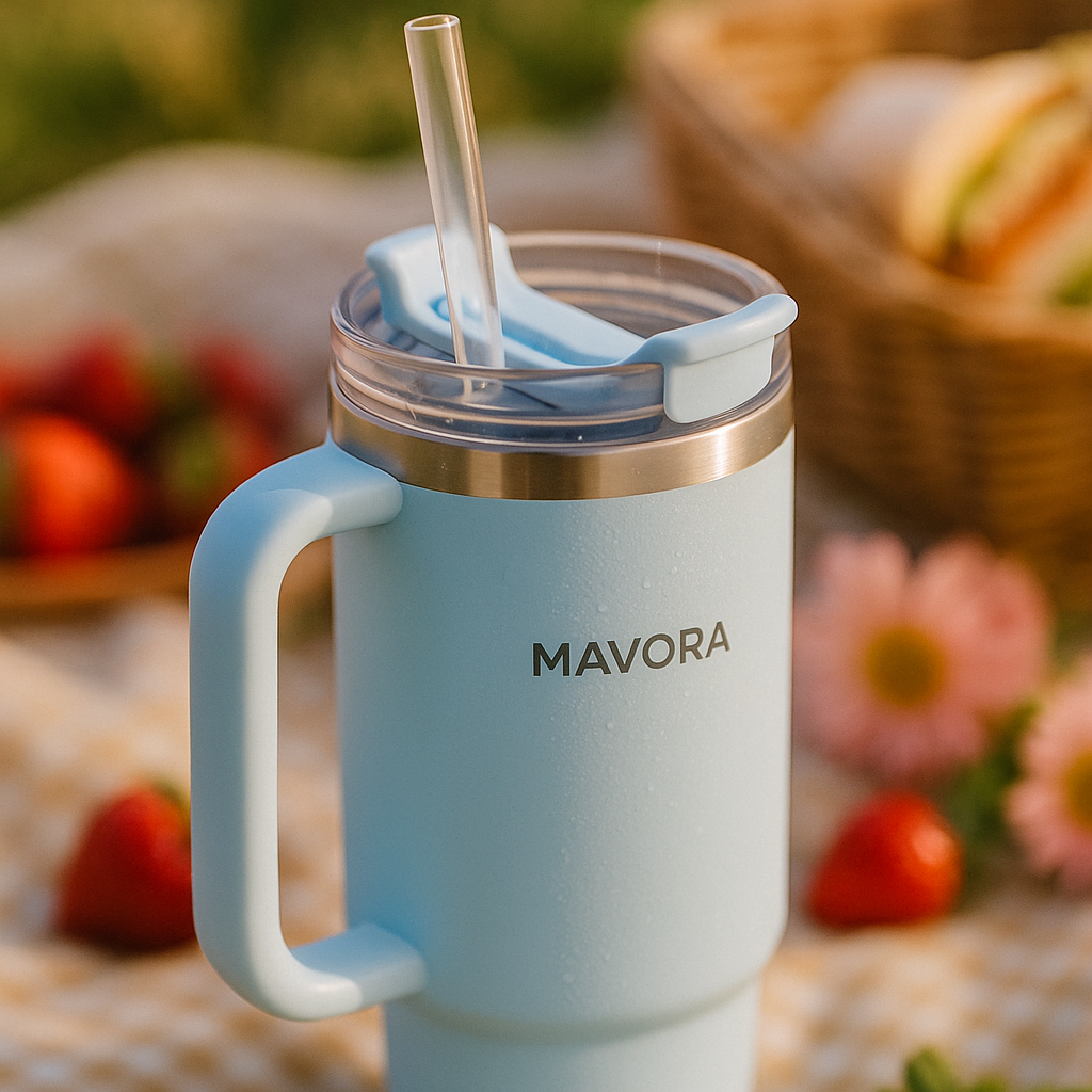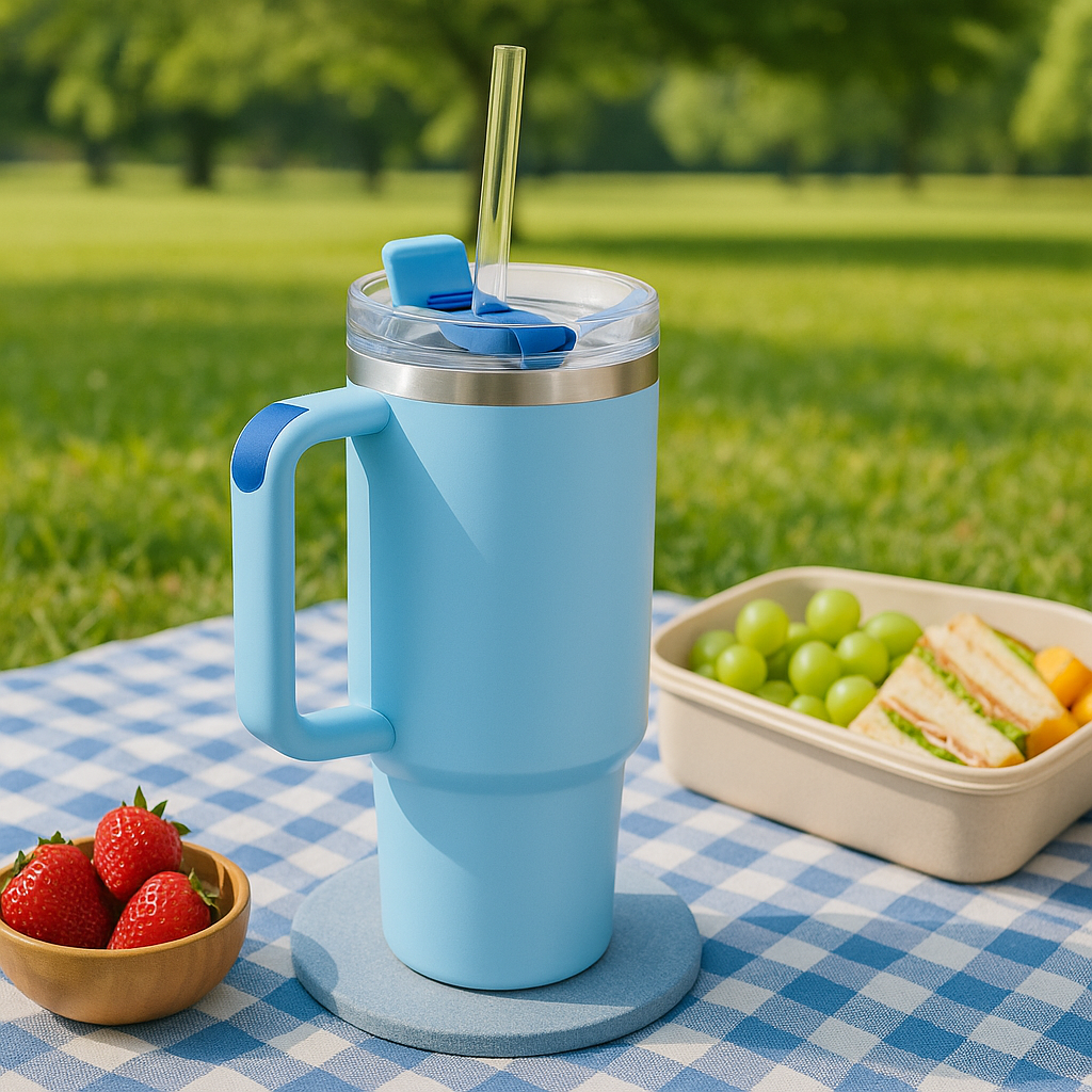 Built for both function and fashion, this sleek tumbler turns heads while fitting perfectly in your car’s cup holder or your gym bag. With modern colors and a comfortable handle, it’s as much a statement piece as it is a hydration essential.